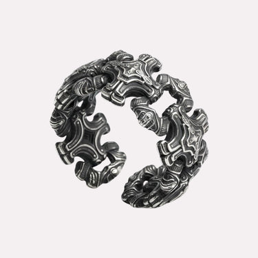 Step into the grandeur of the Byzantine Empire with this meticulously crafted ring, forged from high-quality premium metal alloy. Its intricate, interlocking design recalls the ornate patterns of Byzantine art and sacred architecture, a symbol of strength, devotion, and timeless beauty.